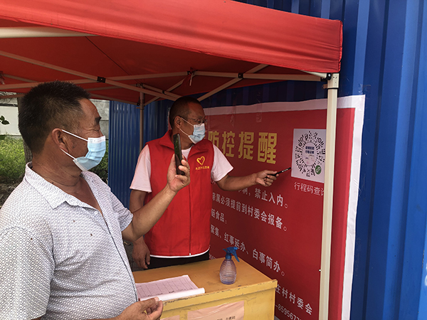 疫情防控卡點值守,指導(dǎo)村民掃碼