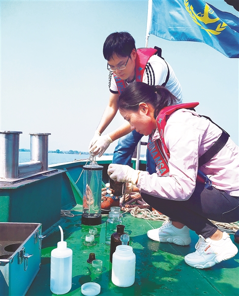 日前,新沂市環(huán)境監(jiān)測站的工作人員來到駱馬湖水源地,對水質(zhì)進(jìn)行常規(guī)檢測。駱馬湖是徐州市的飲用水源地,關(guān)乎數(shù)百萬人的飲用水安全,所以水源地保護至關(guān)重要。