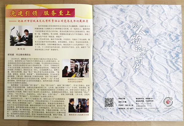 在3月16日最新一期出版的《環(huán)球人物》雜志,今年第6期(總第465期)刊物封二和封三頁(yè)面上,刊發(fā)了介紹徐州市彭城五交化戴銀霞事跡的文章:《黨建引領(lǐng) 服務(wù)至上一一記徐州市彭城五交化有限責(zé)任公司黨總支書記戴銀霞》。